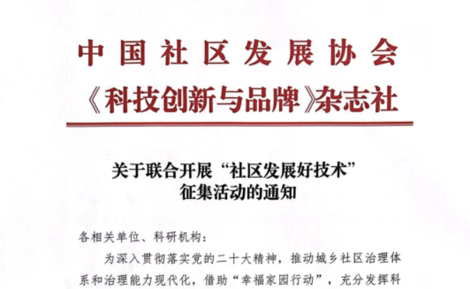 為深入貫徹落實黨的二十大精神,推動城鄉(xiāng)社區(qū)治理體系和治理能力現(xiàn)代化,借助“幸福家園行動”,充分發(fā)揮科技創(chuàng)新在社區(qū)高質量發(fā)展中的引領作用,中國社區(qū)發(fā)展協(xié)會聯(lián)合《科技創(chuàng)新與品牌》雜志社,面向......